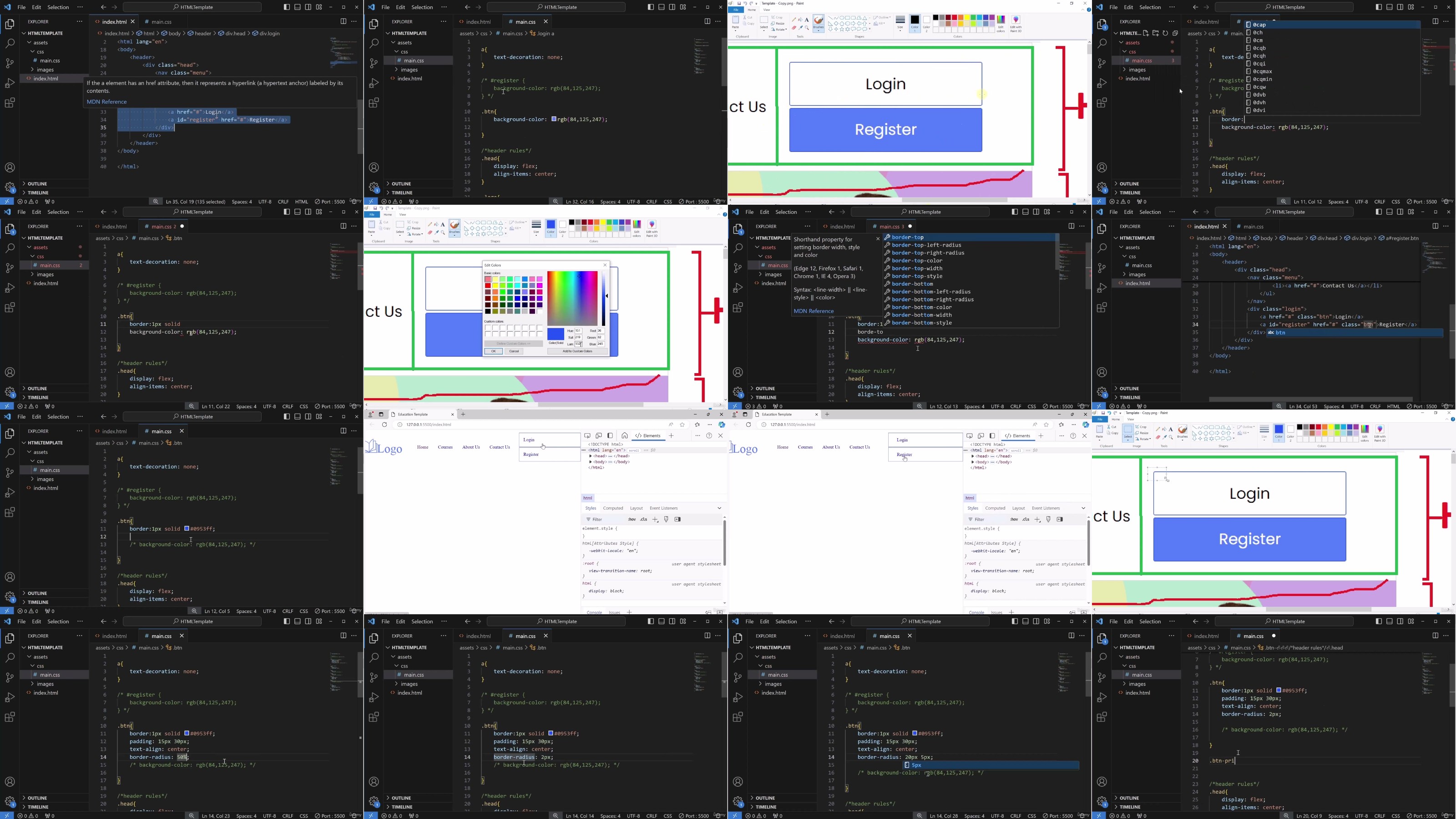 Defining rules in CSS to style the template